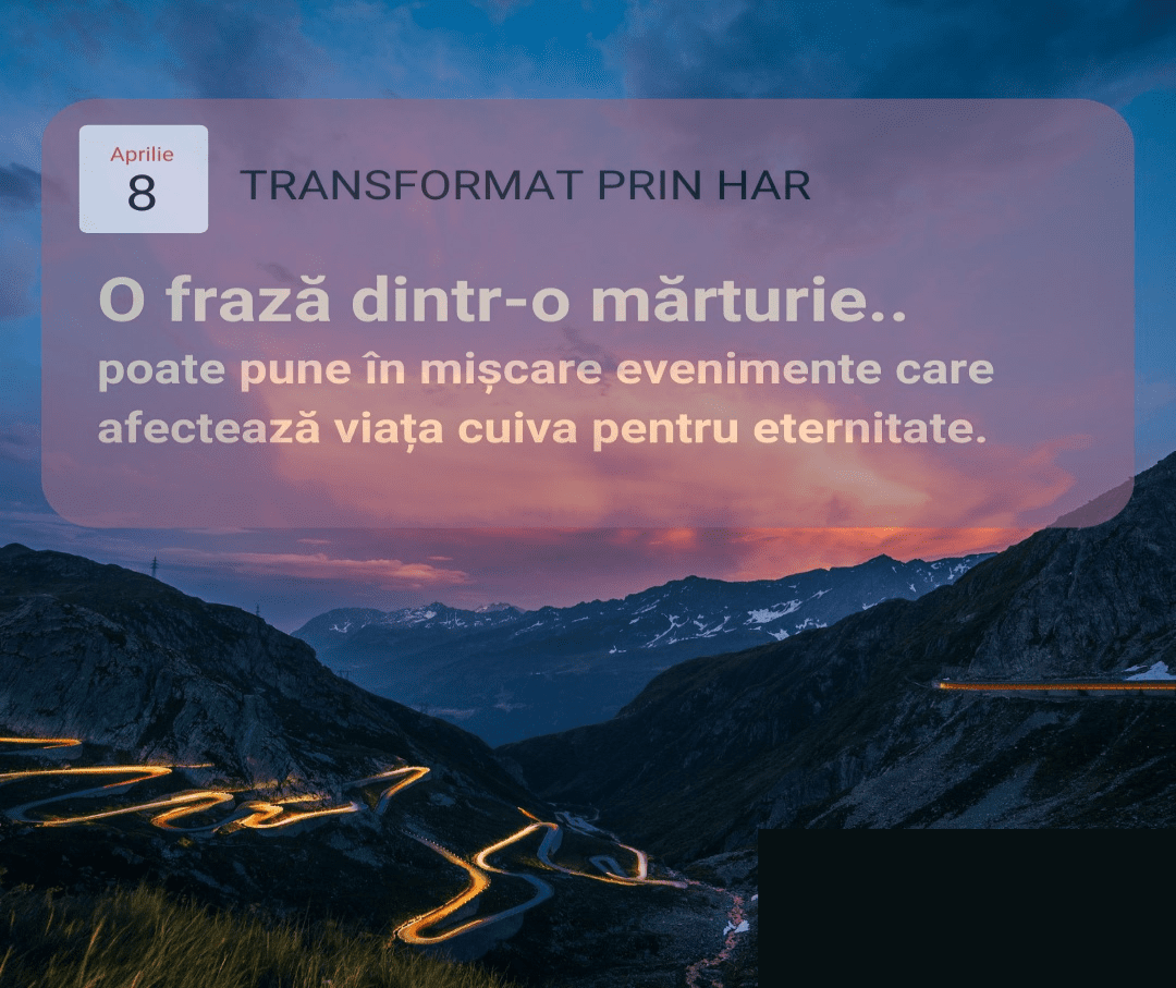 Toți am trecut prin experiențe frumoase sau mai puțin frumoase, dar toate ne-au ajutat să creștem și să ne maturizăm spiritual. Vrem să fim un ajutor unii pentru alții, de aceea scrie povestea ta, mărturia ta, orice experiență din viața ta, împărtășește-o cu noi și fii o încurajare și pentru alții.