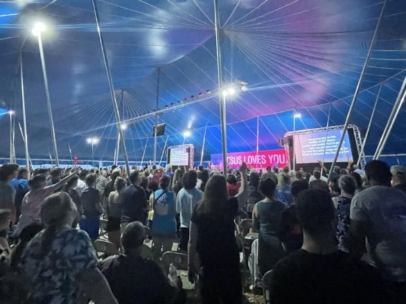 Pastorul Harrison a anunțat CBN News printr-un e-mail că serviciile de închinare au loc în continuare sub cort după aproximativ opt luni.