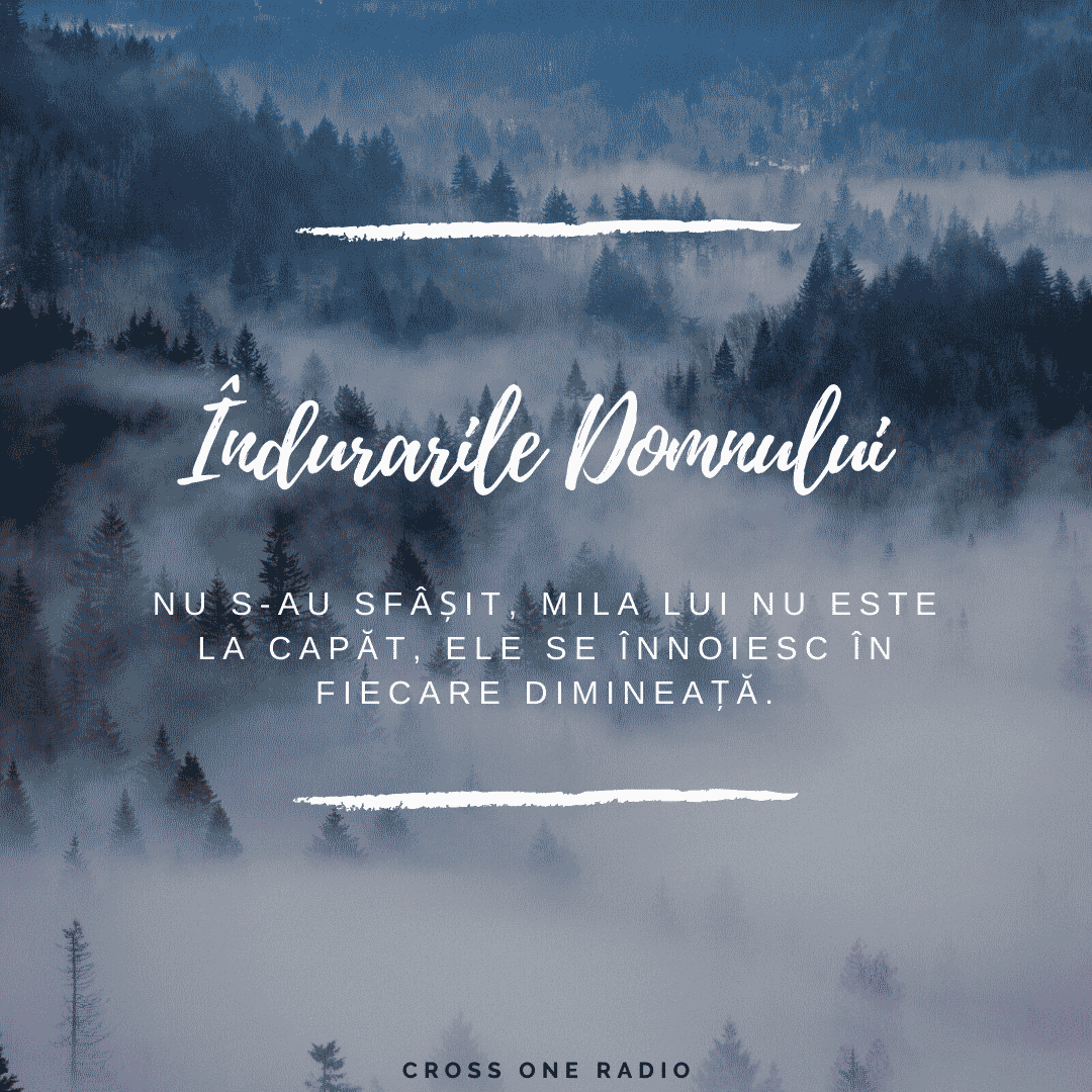 01 Noiembrie 2020 Nov 1, 2020 | Incurajarea zilei Îndurările Domnului nu s-au sfârșit și mila Lui nu este la capăt, ele se înnoiesc în fiecare dimineață. Plângerile lui Ieremia 3:22-23Share on InstagramShare on YouTubeShare on FacebookShare on EmailShare on TwitterShare on LinkedInShare on WhatsApp