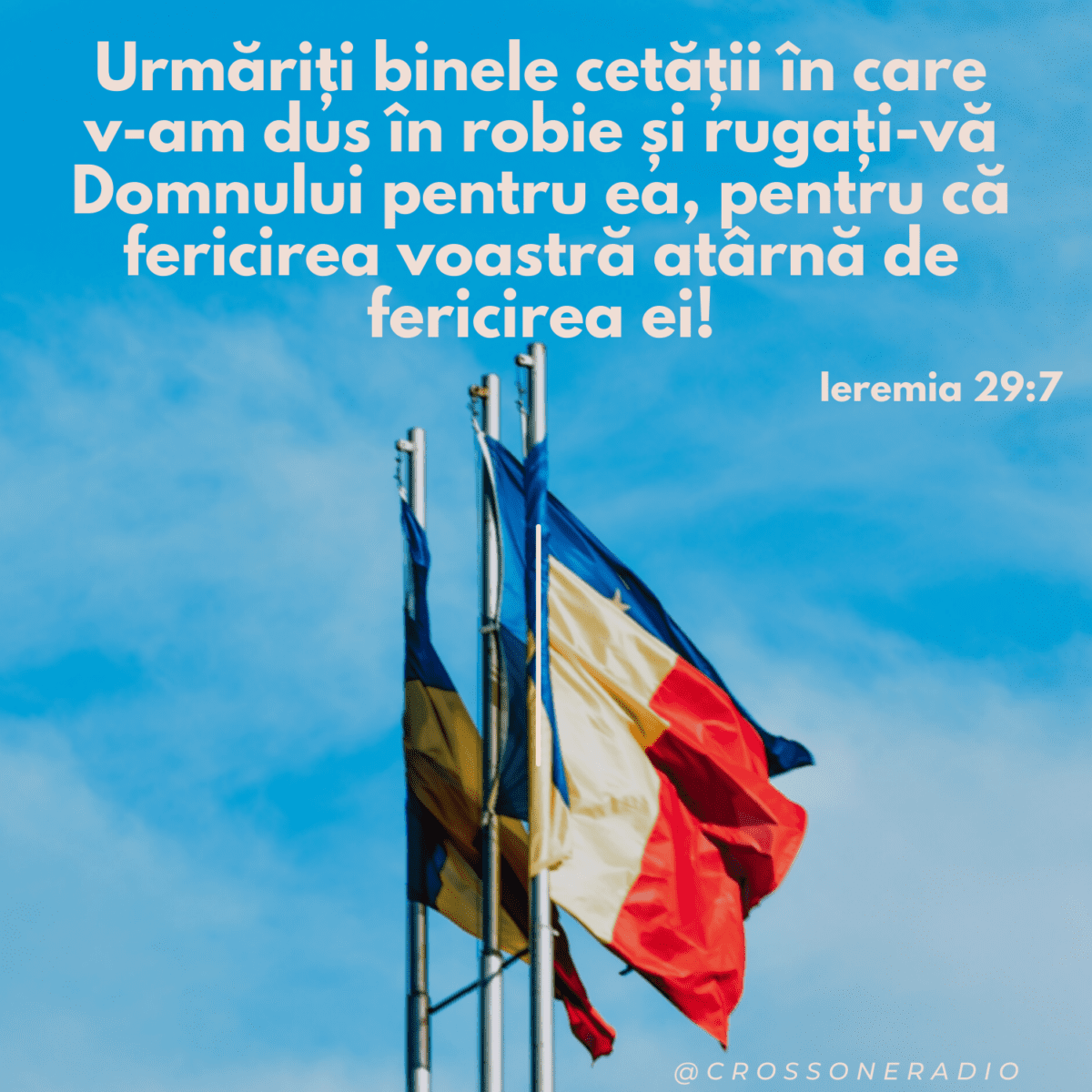 1 Decembrie 2021 Dec 1, 2021 | Incurajarea zilei Urmăriţi binele cetăţii în care v-am dus în robie şi rugaţi-vă Domnului pentru ea, pentru că fericirea voastră atârnă de fericirea ei! Ieremia 29:7Share on InstagramShare on YouTubeShare on FacebookShare on EmailShare on TwitterShare on LinkedInShare on WhatsApp