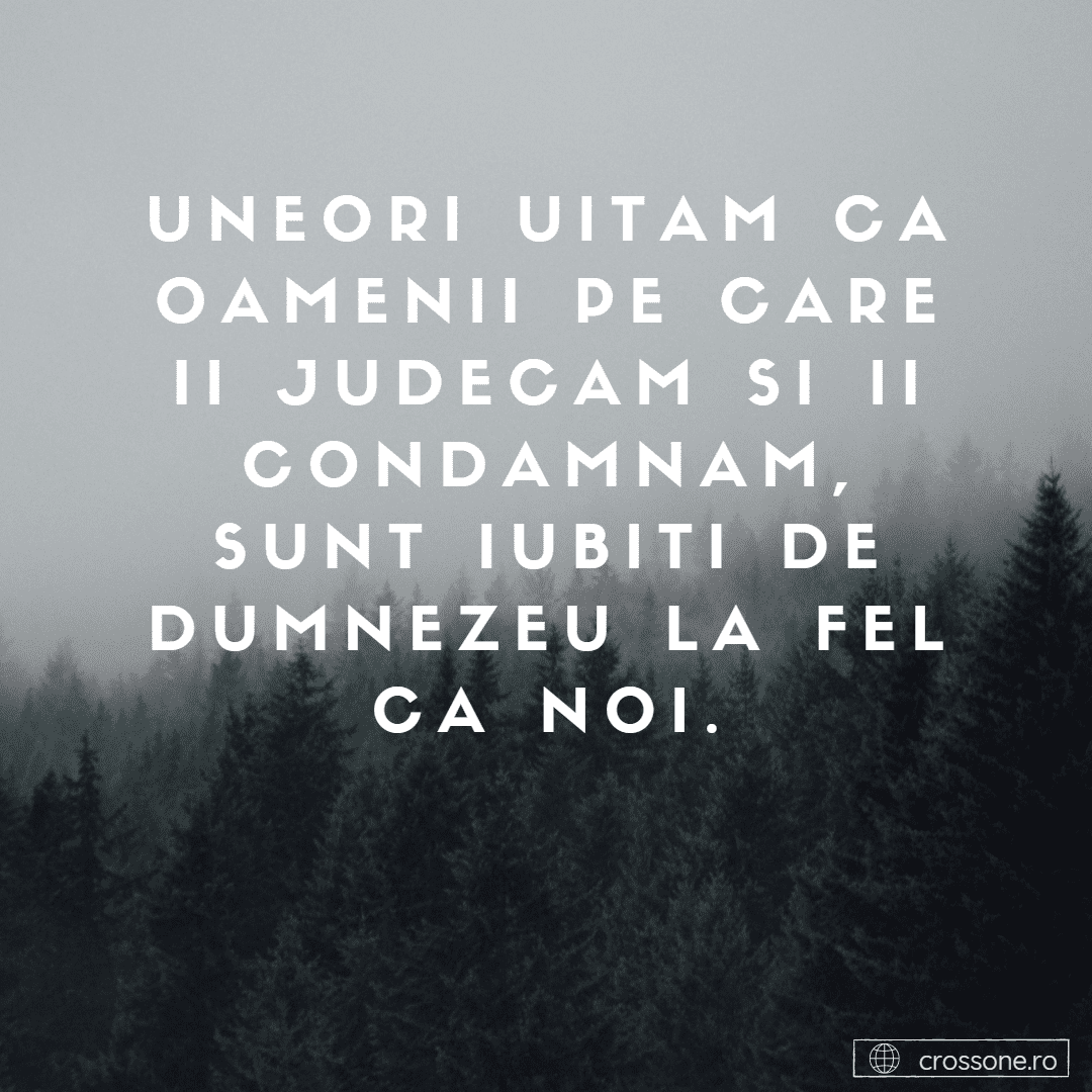 10 Septembrie 2021 Sep 10, 2021 | Incurajarea zilei Uneori uitam ca oamenii pe care ii judecam si ii condamnam, sunt iubiti de Dumnezeu la fel ca noi.Share on InstagramShare on YouTubeShare on FacebookShare on EmailShare on TwitterShare on LinkedInShare on WhatsApp