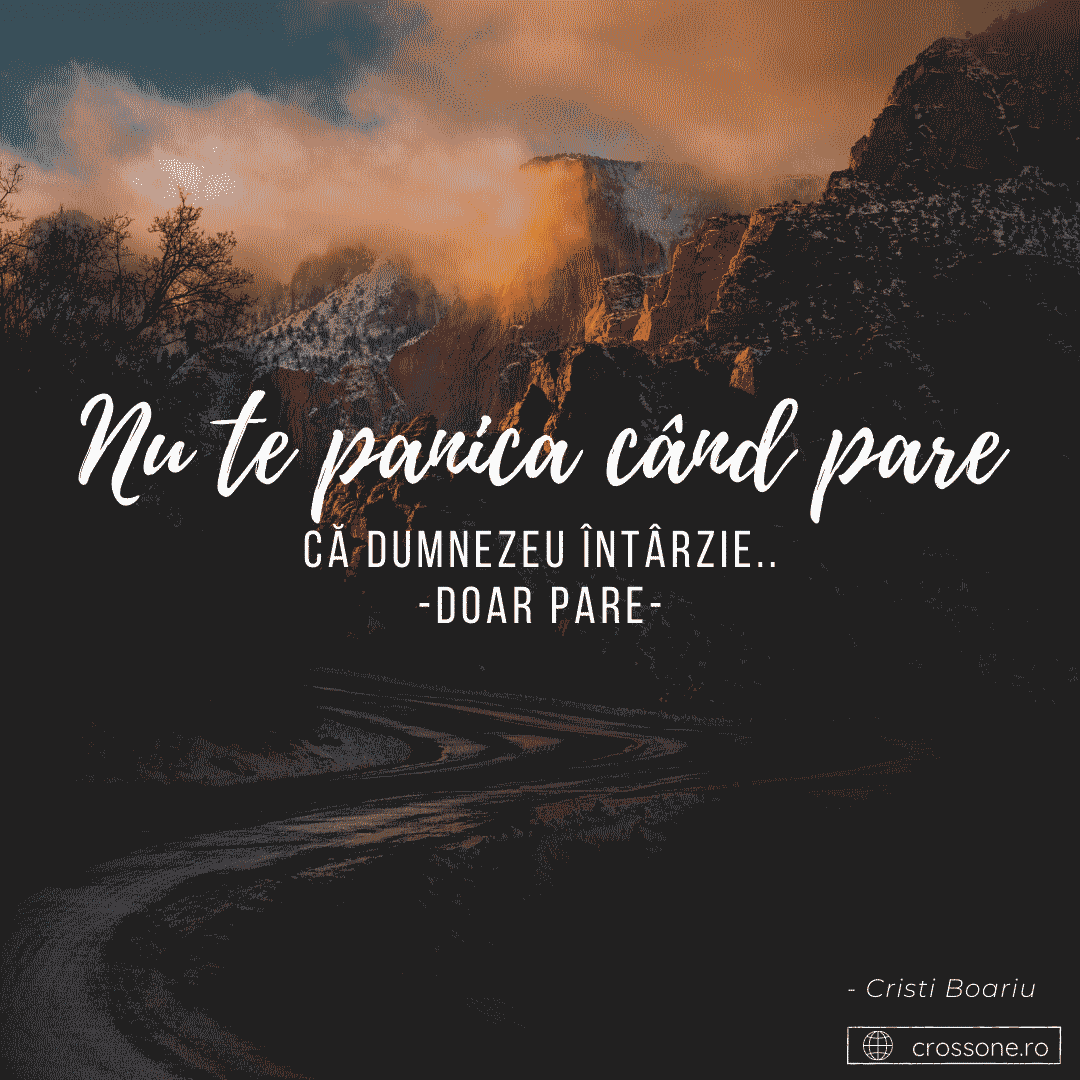 11 Martie 2021 Mar 11, 2021 | Incurajarea zilei Nu te panica când pare că Dumnezeu întârzie, doar pare..Share on InstagramShare on YouTubeShare on FacebookShare on EmailShare on TwitterShare on LinkedInShare on WhatsApp