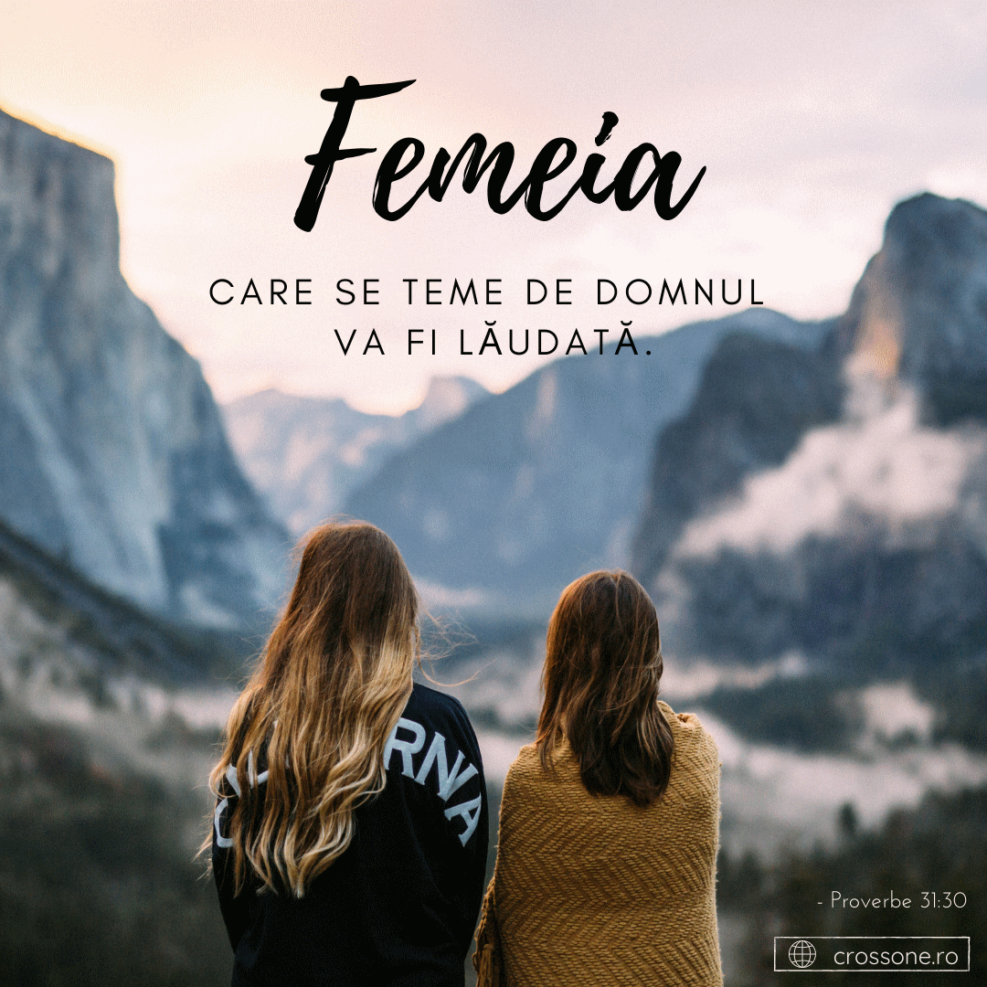 14 Martie 2021 Mar 15, 2021 | Incurajarea zilei Femeia care se teme de Domnul va fi lăudată.Share on InstagramShare on YouTubeShare on FacebookShare on EmailShare on TwitterShare on LinkedInShare on WhatsApp