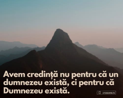 16 Martie 2022 Mar 16, 2022 | Incurajarea zilei Avem credință nu pentru că un dumnezeu există, ci pentru că Dumnezeu există.Share on InstagramShare on YouTubeShare on FacebookShare on EmailShare on TwitterShare on LinkedInShare on WhatsApp