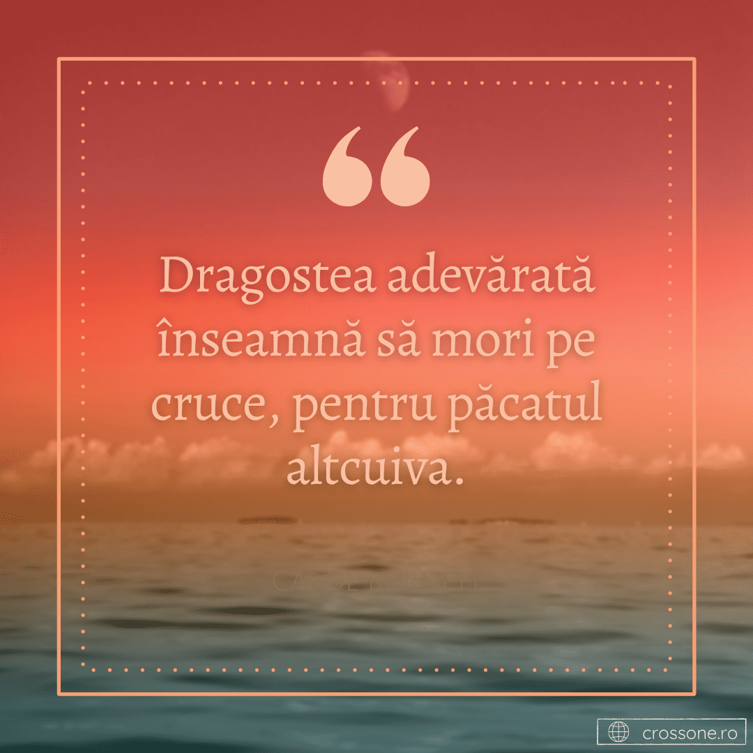 17 Iulie 2021 Jul 20, 2021 | Incurajarea zilei Dragostea adevărată înseamnă să mori pe cruce pentru păcatul altcuiva.Share on InstagramShare on YouTubeShare on FacebookShare on EmailShare on TwitterShare on LinkedInShare on WhatsApp