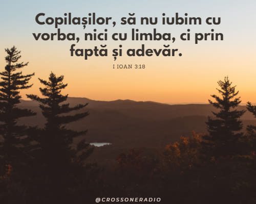 17 Martie 2022 Mar 17, 2022 | Incurajarea zilei Copilașilor, să nu iubim cu vorba, nici cu limba, ci prin faptă și adevăr. I Ioan 3:18Share on InstagramShare on YouTubeShare on FacebookShare on EmailShare on TwitterShare on LinkedInShare on WhatsApp
