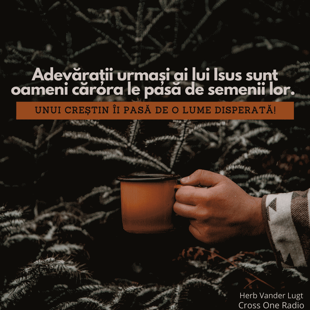 17 Noiembrie 2020 Nov 17, 2020 | Incurajarea zilei Adevărații urmași ai lui Isus sunt oameni cărora le pasă de semenii lor. Unui creștin îi pasă de o lume disperată. – Herb Vander LugtShare on InstagramShare on YouTubeShare on FacebookShare on EmailShare on TwitterShare on LinkedInShare on WhatsApp