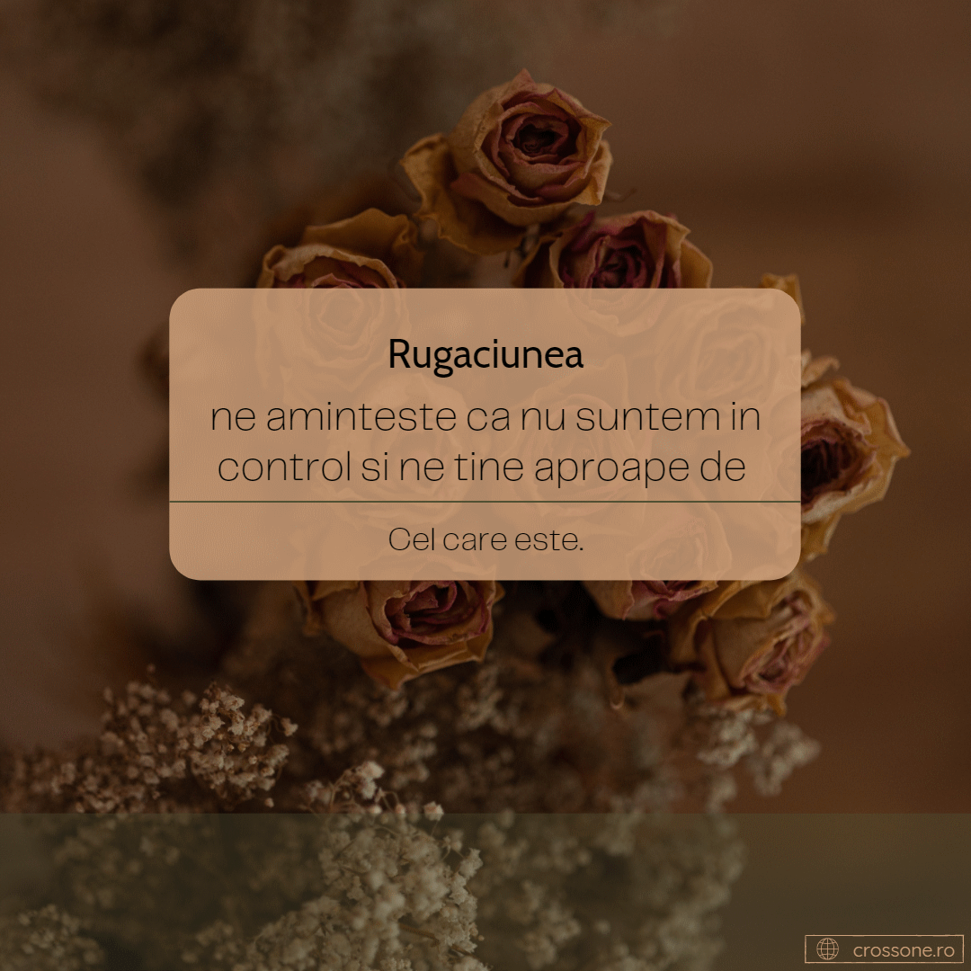 19 August 2021 Aug 19, 2021 | Incurajarea zilei Rugăciunea ne amintește că nu suntem în control și ne ține aproape de Cel care este.Share on InstagramShare on YouTubeShare on FacebookShare on EmailShare on TwitterShare on LinkedInShare on WhatsApp