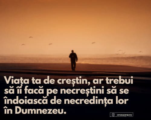 19 Martie 2022 Mar 19, 2022 | Incurajarea zilei Viața ta de creștin, ar trebui să îi facă pe necreștini să se îndoiască de necredința lor în Dumnezeu.Share on InstagramShare on YouTubeShare on FacebookShare on EmailShare on TwitterShare on LinkedInShare on WhatsApp