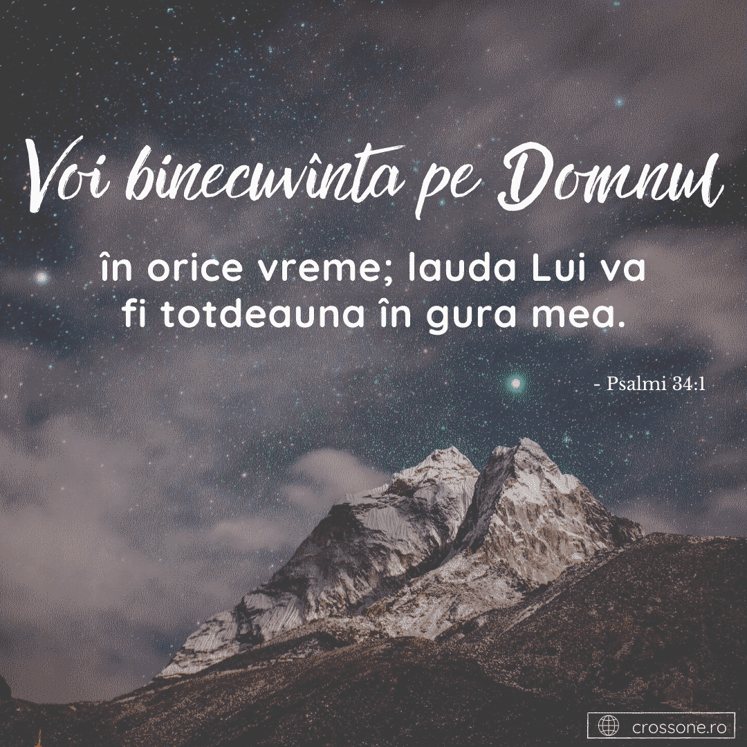 2 Aprilie 2021 Apr 2, 2021 | Incurajarea zilei Voi binecuvânta pe Domnul în orice vreme, lauda Lui va fi totdeauna în gura mea. Psalmul 34:1Share on InstagramShare on YouTubeShare on FacebookShare on EmailShare on TwitterShare on LinkedInShare on WhatsApp