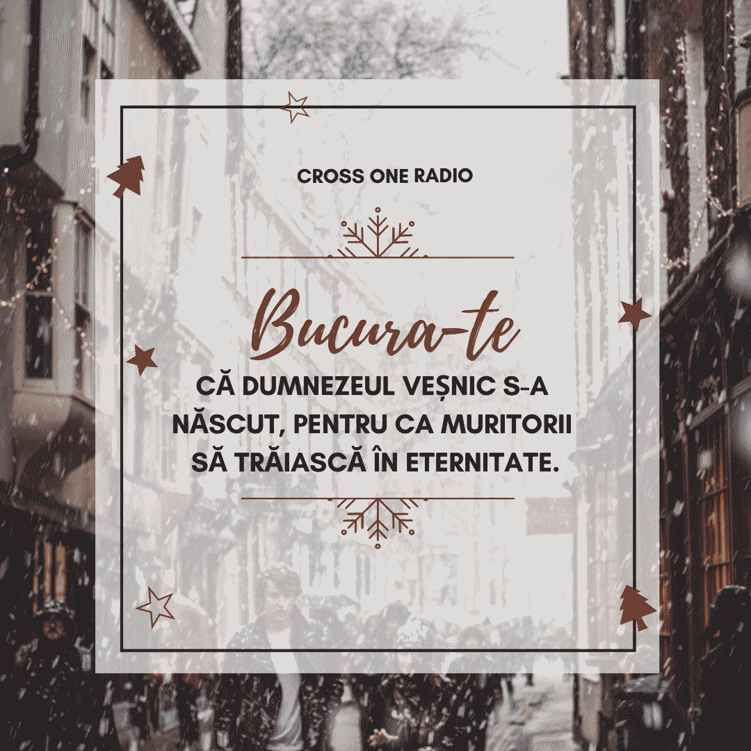 21 Decembrie 2020 Dec 21, 2020 | Incurajarea zilei Bucură-te că Dumnezeul veșnic S-a născut, pentru ca muritorii să trăiască în eternitate.Share on InstagramShare on YouTubeShare on FacebookShare on EmailShare on TwitterShare on LinkedInShare on WhatsApp