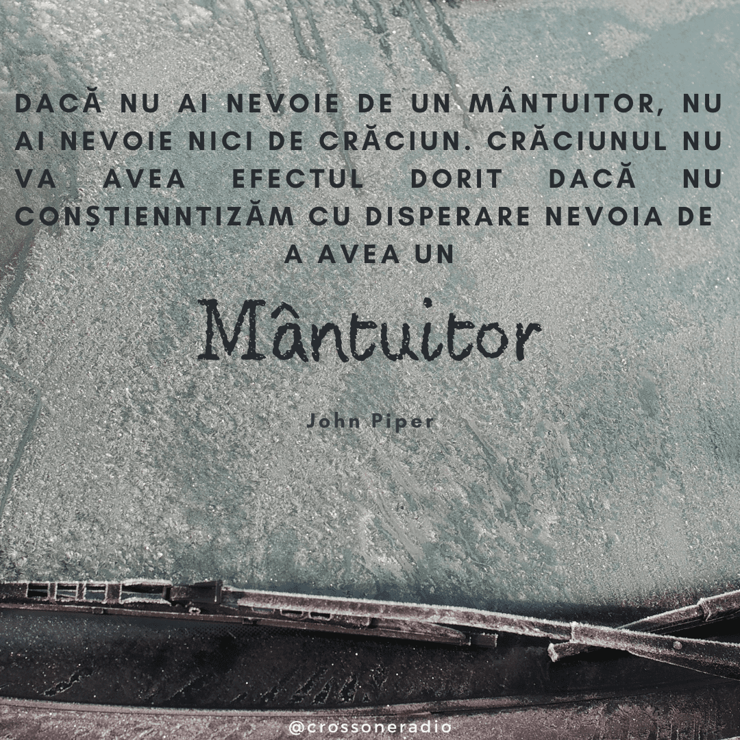 Dacă nu ai nevoie de un Mântuitor, nu ai nevoie nici de Crăciun. Crăciunul nu va avea efectul dorit dacă nu conștientizăm cu disperare nevoia de a avea un Mântuitor.