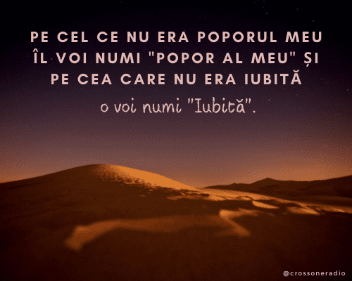 21 Martie 2022 Mar 21, 2022 | Incurajarea zilei Pe cel ce nu era poporul Meu îl voi numi “Popor al Meu” și pe cea care nu era iubită o voi numi “Iubită”. Share on InstagramShare on YouTubeShare on FacebookShare on EmailShare on TwitterShare on LinkedInShare on WhatsApp