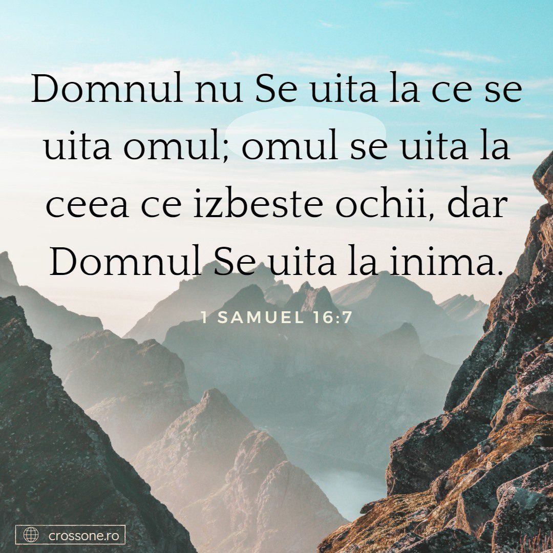 24 Iulie 2021 Jul 26, 2021 | Incurajarea zilei Domnul nu se uita la ceea ce se uita omul, omul se uita la ceea ce izbeste ochii, dar Domnul se uita la inima. 1 Samuel 16:7Share on InstagramShare on YouTubeShare on FacebookShare on EmailShare on TwitterShare on LinkedInShare on WhatsApp