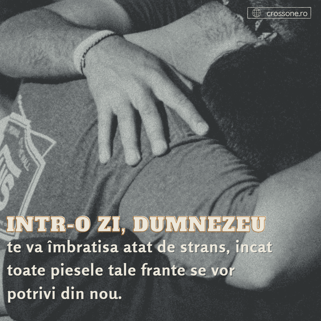 29 August 2021 Sep 8, 2021 | Incurajarea zilei Intr-o zi Dumnezeu te va imbratisa atat de strans, incat toate piesele tale frante se vor potrivi din nou.Share on InstagramShare on YouTubeShare on FacebookShare on EmailShare on TwitterShare on LinkedInShare on WhatsApp
