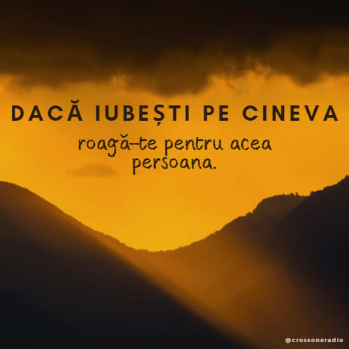 29 Martie 2022 Mar 29, 2022 | Incurajarea zilei Dacă iubești pe cineva, roagă-te pentru acea persoana.Share on InstagramShare on YouTubeShare on FacebookShare on EmailShare on TwitterShare on LinkedInShare on WhatsApp