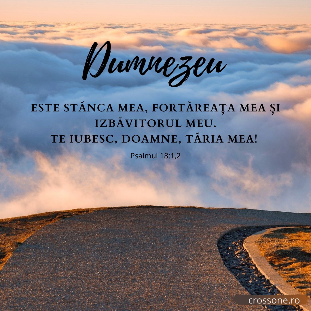 3 Octombrie 2020 | Psalmul 18:1,2 Oct 3, 2020 | Incurajarea zilei Dumnezeu este stanca mea, fortareata mea si izbavitorul meu. Te iubesc, Doamne, taria mea! Psalmul 18:1,2Share on InstagramShare on YouTubeShare on FacebookShare on EmailShare on TwitterShare on LinkedInShare on WhatsApp