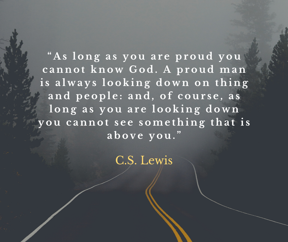 As long as you are proud, you can not know God. A proud man is always looking down on thing and people and of course as long as you are looking down you can not see something that is above you.