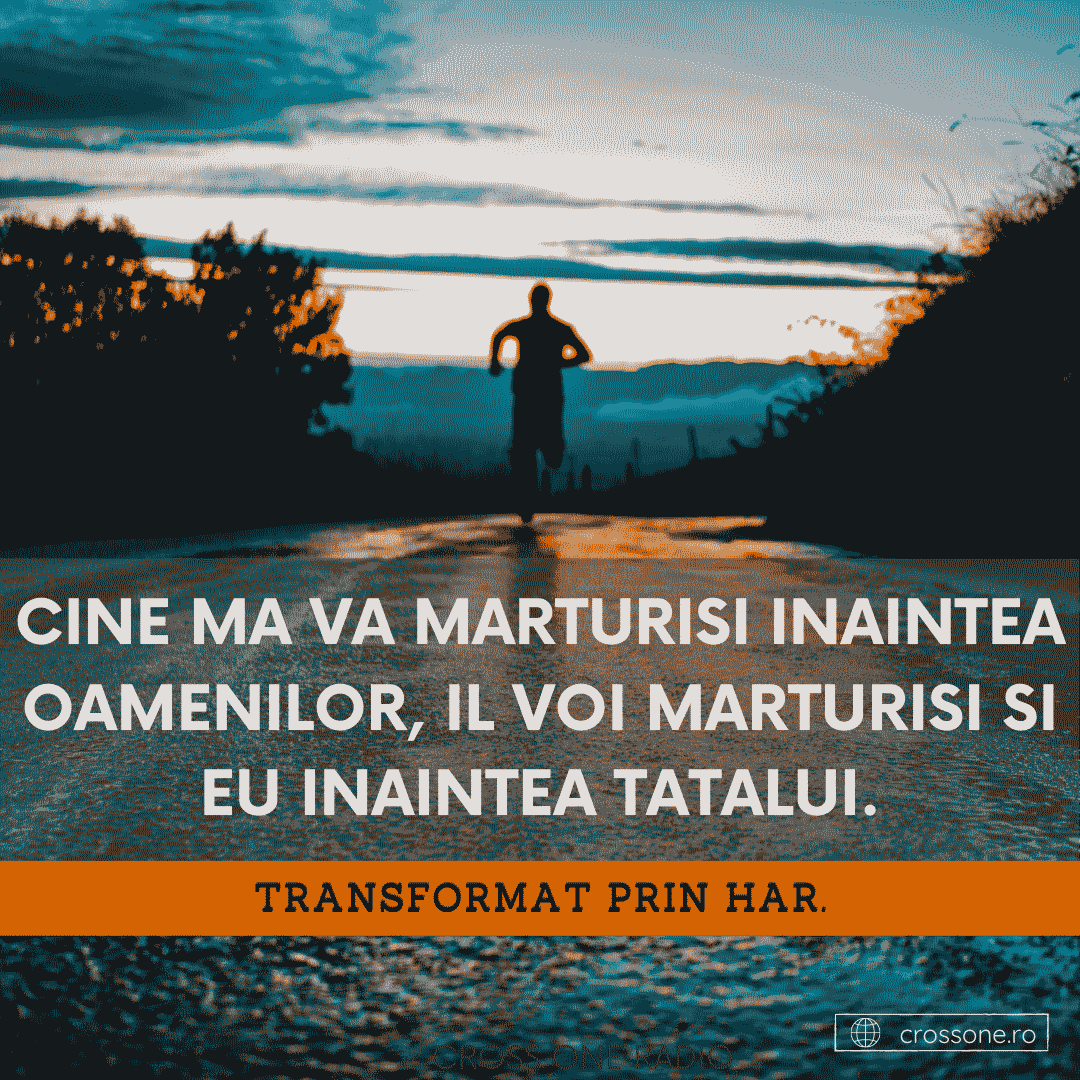 31 Martie 2021 Mar 31, 2021 | Incurajarea zilei Cine mă va mărturisi înaintea oamenilor, îl voi mărturisi și Eu înaintea Tatălui. Share on InstagramShare on YouTubeShare on FacebookShare on EmailShare on TwitterShare on LinkedInShare on WhatsApp