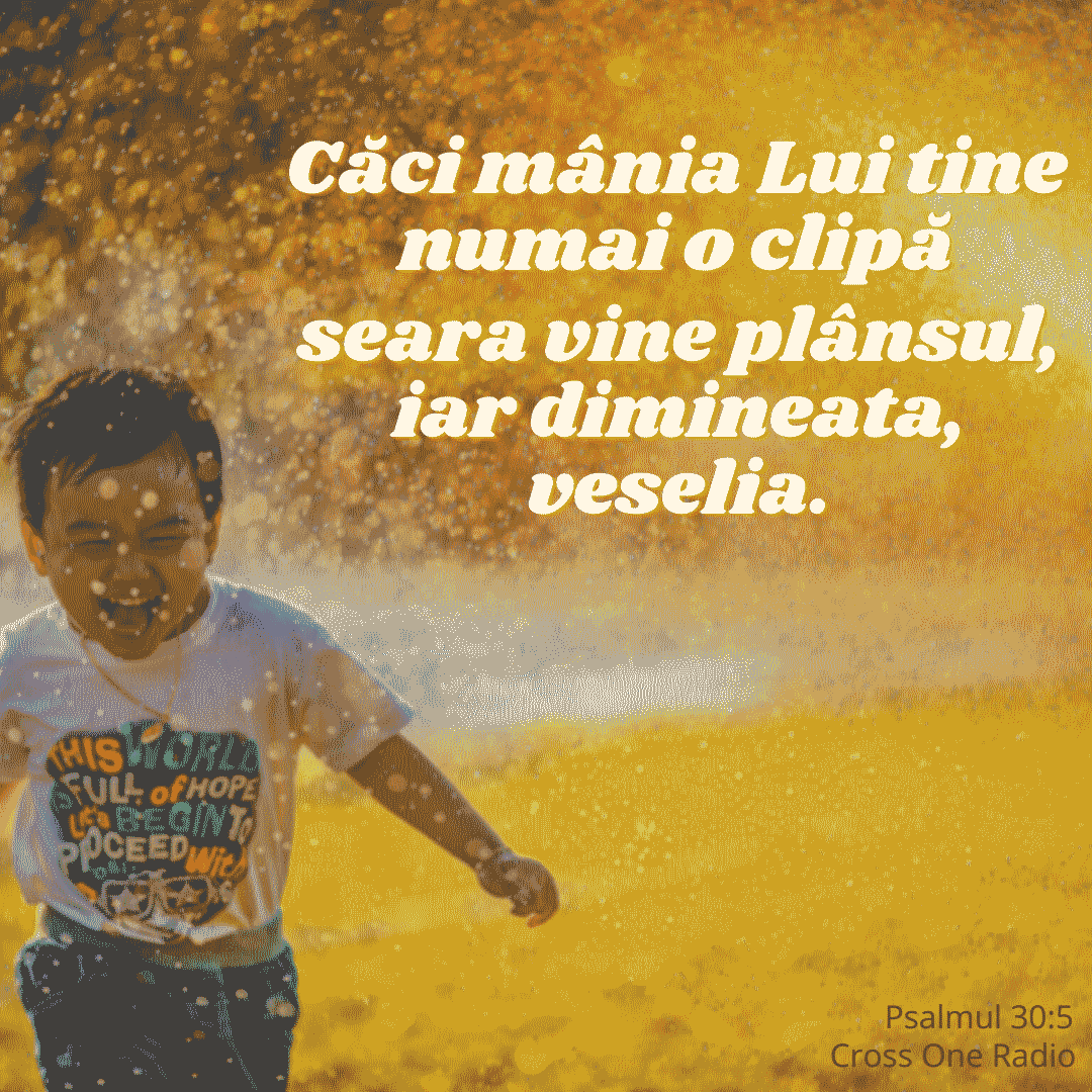 4 Ianuarie 2021 Jan 4, 2021 | Incurajarea zilei Căci mânia Lui ține numai o clipă, seara vine plânsul, iar dimineața veselie. Psalmul 30:5Share on InstagramShare on YouTubeShare on FacebookShare on EmailShare on TwitterShare on LinkedInShare on WhatsApp