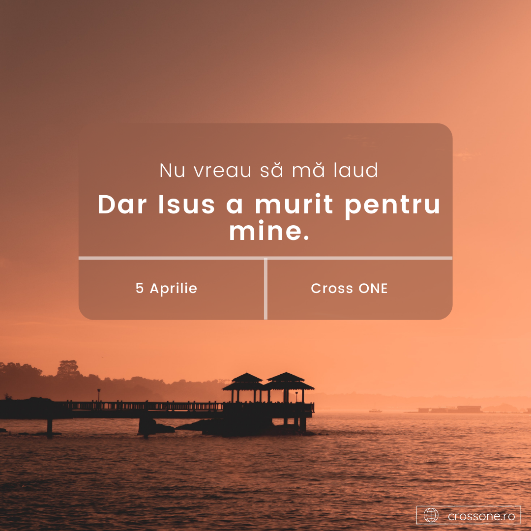 5 Aprilie 2021 Apr 5, 2021 | Incurajarea zilei Nu vreau să mă laud, dar Isus a murit pentru mine..Share on InstagramShare on YouTubeShare on FacebookShare on EmailShare on TwitterShare on LinkedInShare on WhatsApp