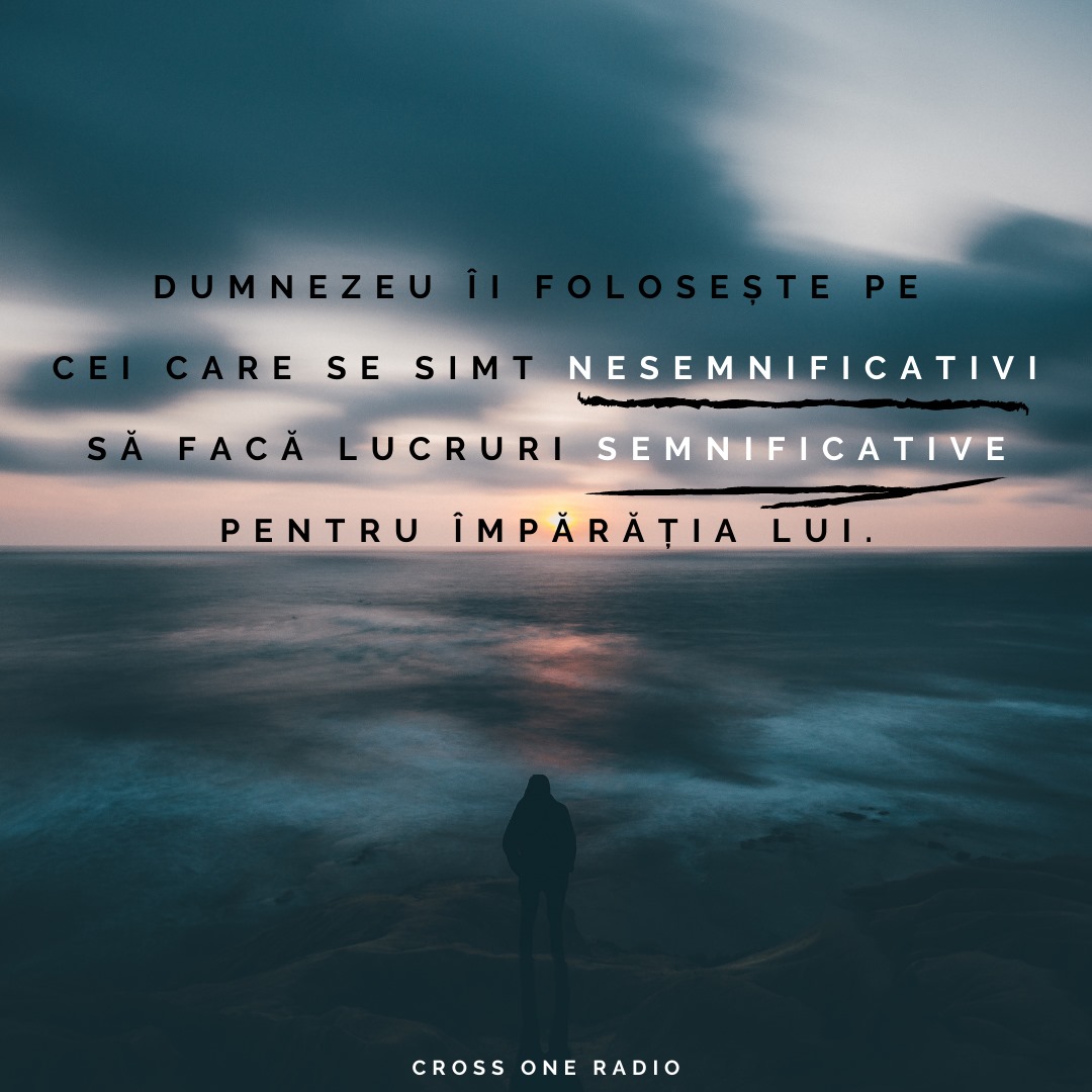 6 Iunie 2021 Jun 6, 2021 | Incurajarea zilei Dumnezeu îi folosește pe cei care se simt nesemnificativi, să facă lucruri semnificative pentru Împărăția Lui.Share on InstagramShare on YouTubeShare on FacebookShare on EmailShare on TwitterShare on LinkedInShare on WhatsApp