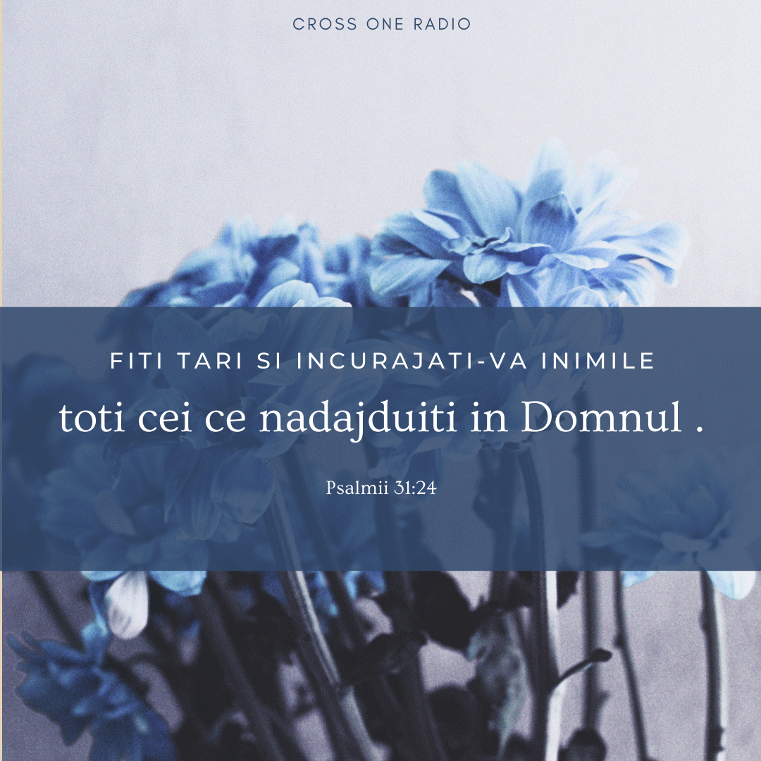 6 Noiembrie 2020 Nov 6, 2020 | Incurajarea zilei Fiți tari și încurajați-vă inimile, toți cei ce nădăjduiți în Domnul. Psalmul 31:24Share on InstagramShare on YouTubeShare on FacebookShare on EmailShare on TwitterShare on LinkedInShare on WhatsApp