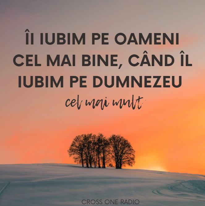 7 Februarie 2021 Feb 7, 2021 | Incurajarea zilei Îi iubim pe oameni cel mai bine, când Îl iubim pe Dumnezeu cel mai mult.Share on InstagramShare on YouTubeShare on FacebookShare on EmailShare on TwitterShare on LinkedInShare on WhatsApp