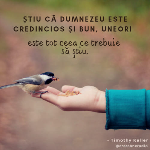 9 Aprilie 2022 Apr 9, 2022 | Incurajarea zilei Știu că dumnezeu este credincios și bun, uneori este tot ceea ce trebuie să știu.Share on InstagramShare on YouTubeShare on FacebookShare on EmailShare on TwitterShare on LinkedInShare on WhatsApp