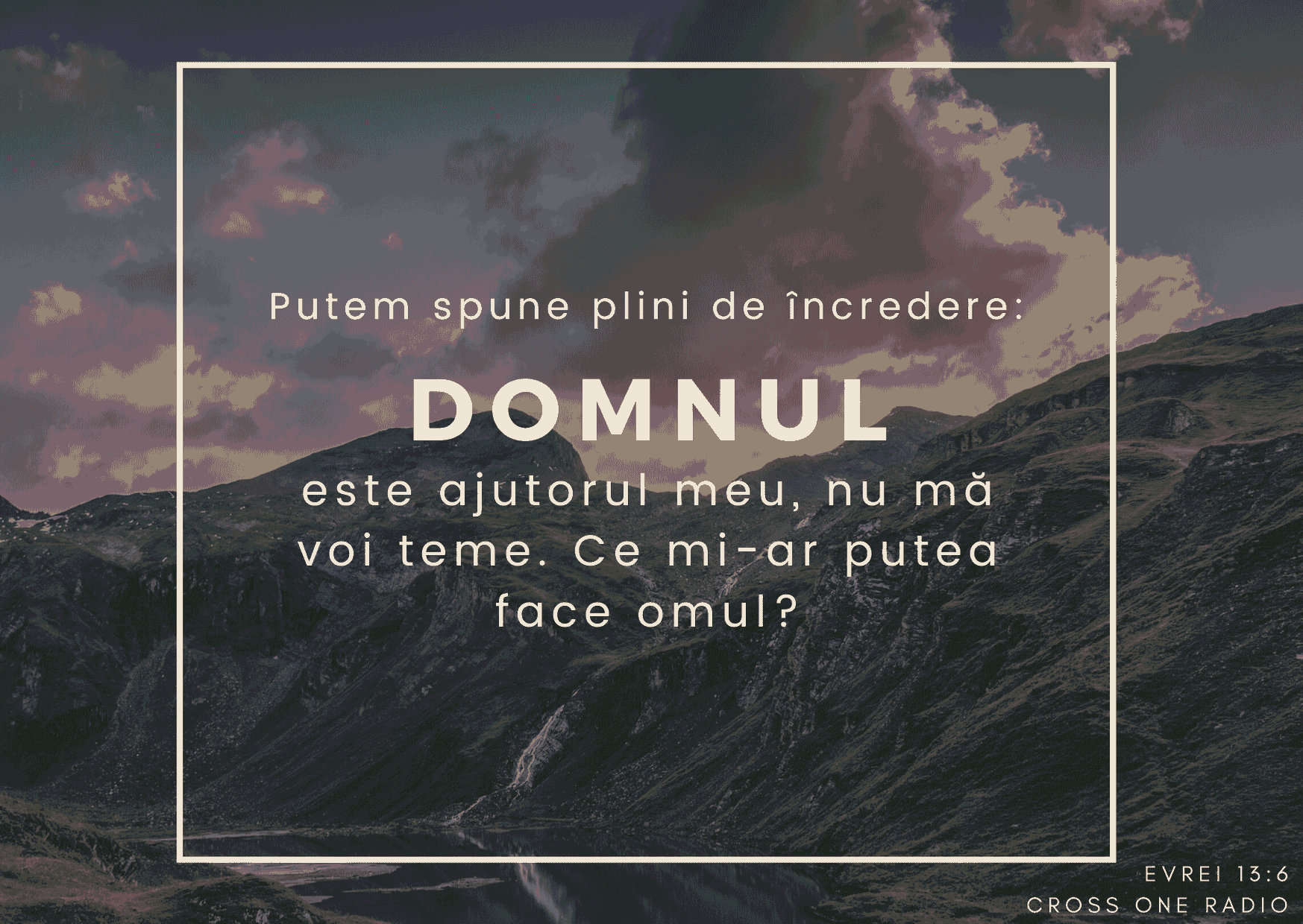 9 Decembrie 2020 Dec 9, 2020 | Incurajarea zilei Putem spune plini de încredere: “Domnul este ajutorul meu, nu mă voi teme. Ce mi-ar putea face omul?” Evrei 13:8Share on InstagramShare on YouTubeShare on FacebookShare on EmailShare on TwitterShare on LinkedInShare on WhatsApp