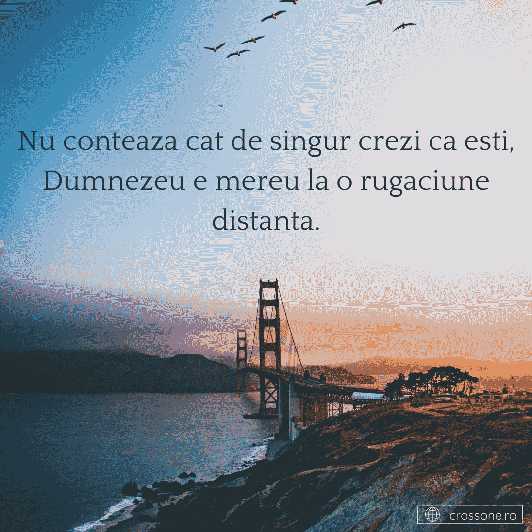 9 Martie 2021 Mar 9, 2021 | Incurajarea zilei Nu contează cât de singur crezi că ești, Dumnezeu e mereu doar la o rugăciune distanță.Share on InstagramShare on YouTubeShare on FacebookShare on EmailShare on TwitterShare on LinkedInShare on WhatsApp